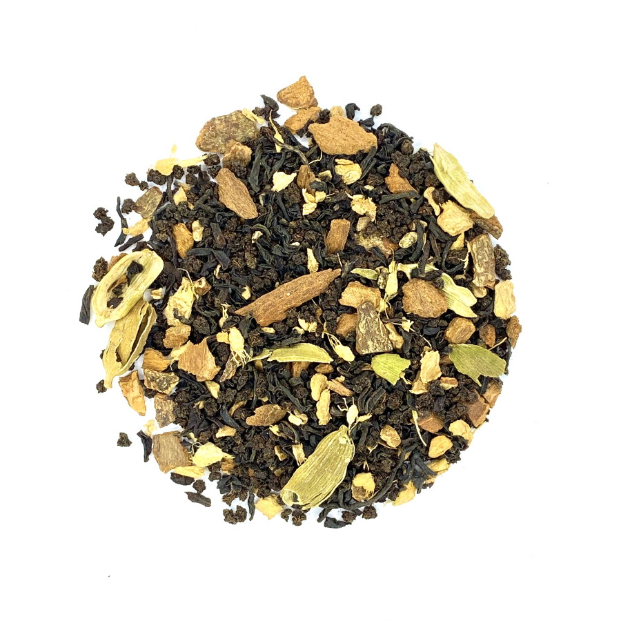 Black Tea with Organic Ginger Root, Organic Cinnamon, Organic Green Cardamom and Natural Cinnamon, Ginger and Vanilla Flavoring